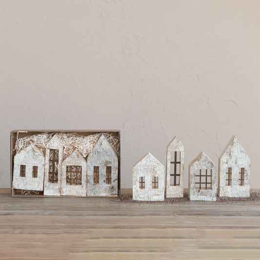 Beautiful Birch Bark Houses w/ Windows, Natural, Boxed Set of 4
