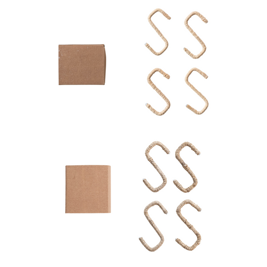 Wire & Natural Fiber Wrapped S-Hook, 2 Styles, Boxed Set of 4