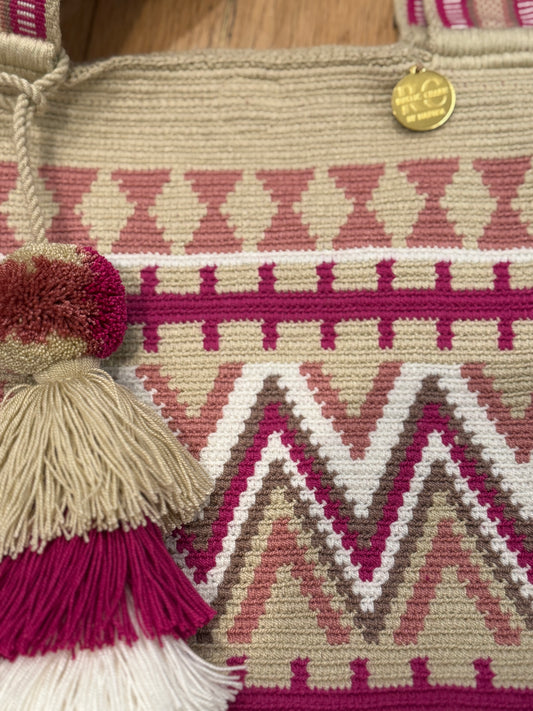AUTHENTIC EXCLUSIVE WAYUU handmade MOCHILA/bag neutral with design. 100% Handmade