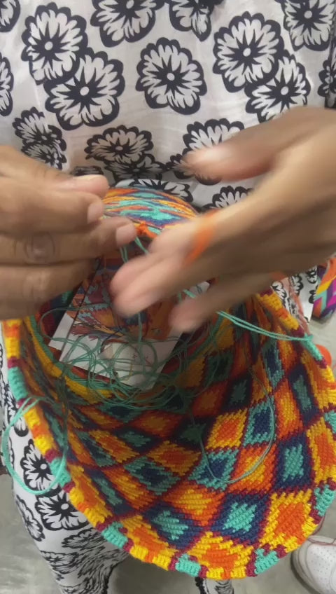 These Mochilas/bags are handmade by the Colombian Wayuu Tribe, using traditional weaving techniques, characterized by their variety of colors, which show experiences, dreams & their environment.